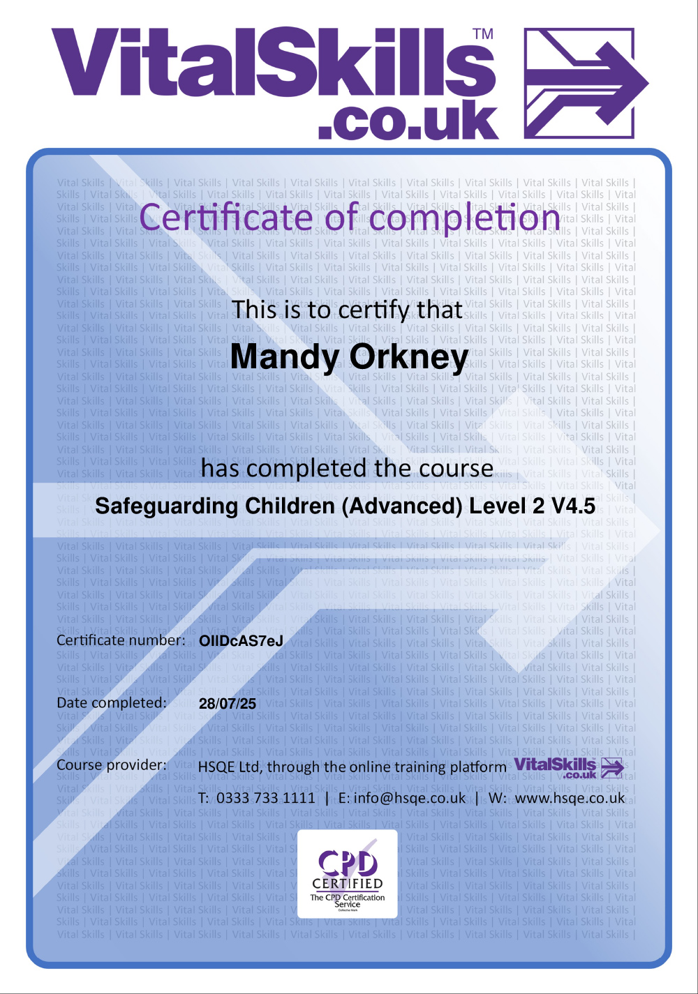 - Vital Skills – Safeguarding Children (Advanced) level 2 V4.4